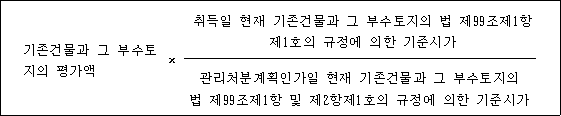 ④제1항 내지 제3항에서 기존건물과 그 부수토지의 평가액이란 다음 각 호의 가액을 말한다. <개정 2007. 2. 28., 2018. 2. 9.>